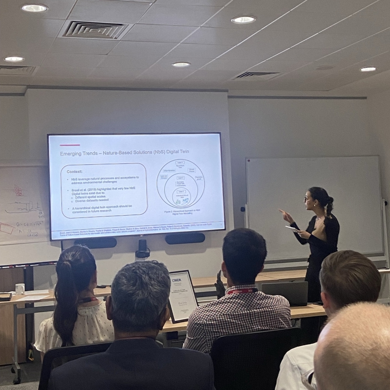 She also discussed strategies to overcome these challenges, such as network segmentation, middleware technologies, and investment in demonstrator projects. She also explored active research areas in developing digital twins, including their application in simulating and optimising nature-based solutions and water quality.