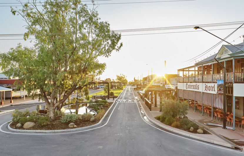Winton’s main shopping centre runs through Elderslie Street, the multifunctional space that also hosts many local events. With a tourism boom seeing crowds of more than 4,000 visiting the town for popular events, and movie makers lining up to use the town centre as a scenic backdrop in feature films, Winton Shire Council made plans to restore Elderslie Street.