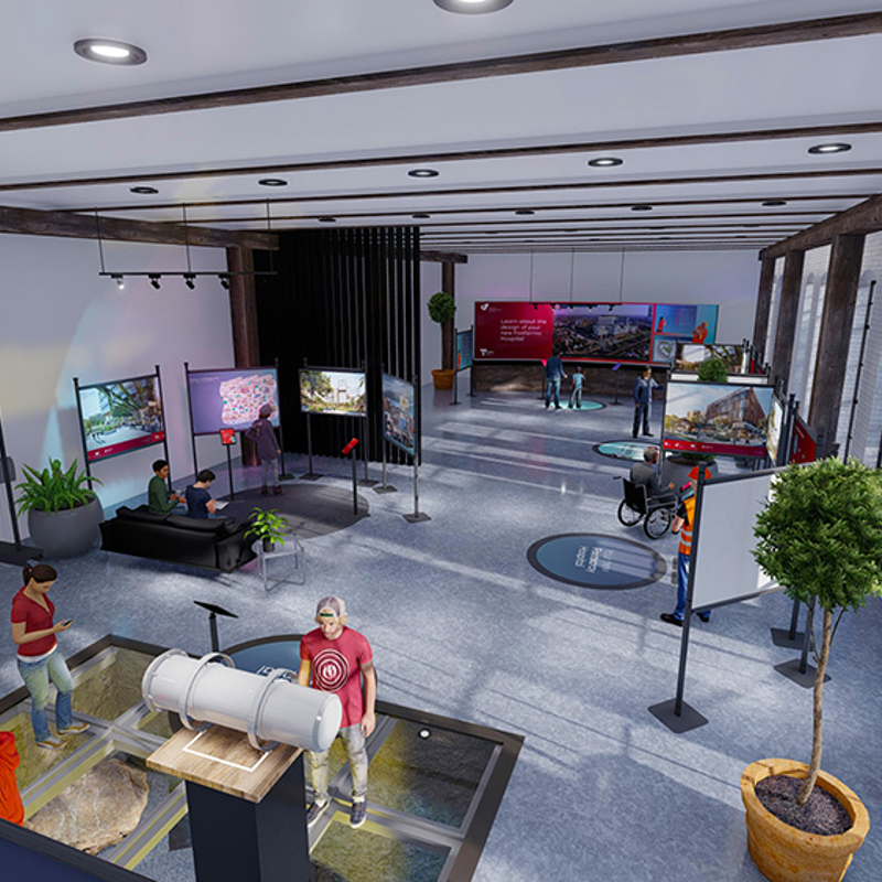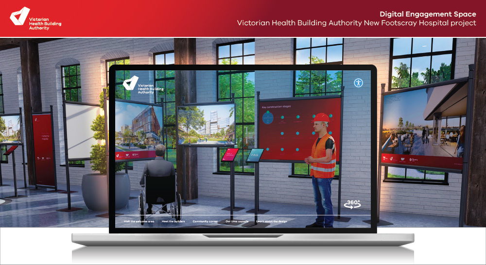 The new Footscray Hospital digital engagement space was designed to provide an innovative and engaging online experience that simulated an in-person engagement session. The dynamic 3D virtual platform allowed visitors to learn about the project through videos and downloadable fact sheets, as well as participate through interactive elements. Construction of the hospital is now underway, with the new Footscray Hospital expected to open in 2025.