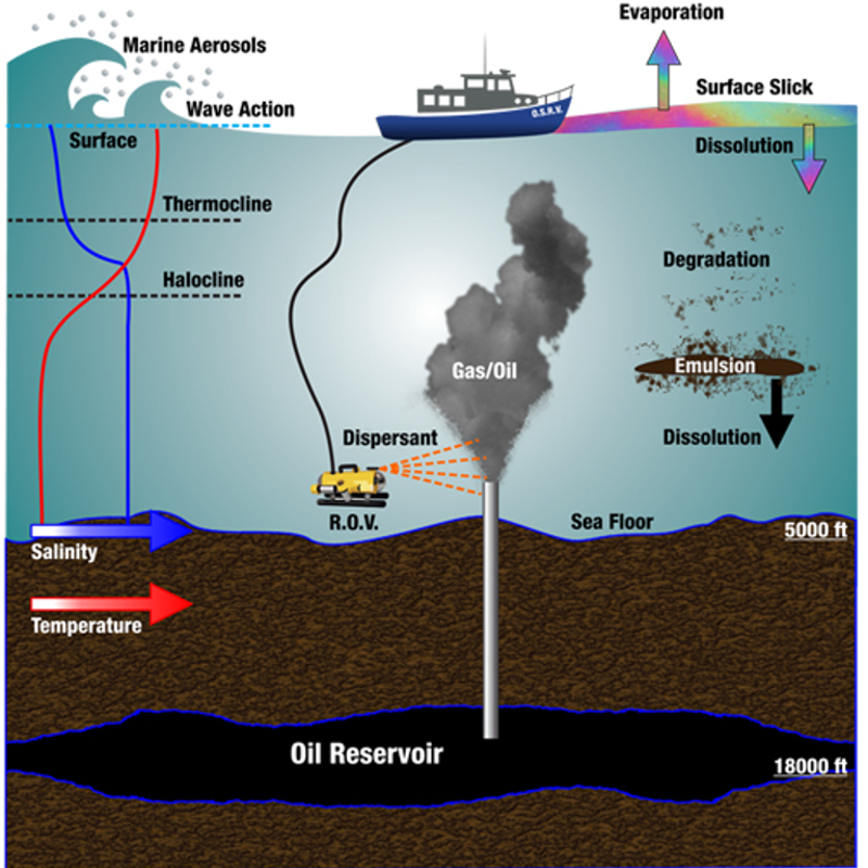 Deepwater Horizon was a large spill from deep water that released oil for many months. The numerical models developed by RPS had to be modified to simulate the complicated oil trajectory from deep water and behavior of the oil over many months, including the application of subsea dispersant.